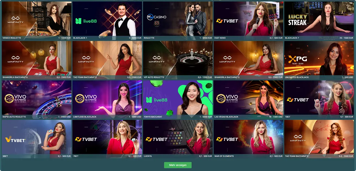 Große Auswahl an Live-Spielen mit echten Dealern und hochwertiger